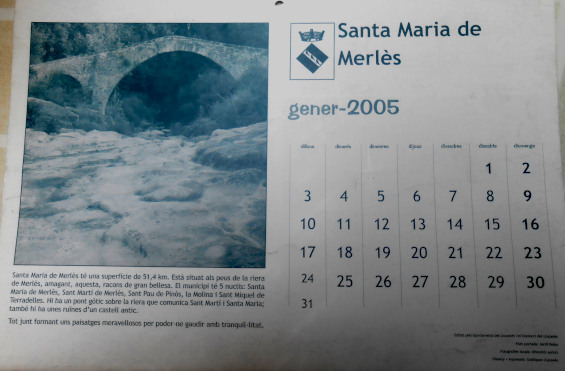 Darrera pagina, esta dedicada al Gener de 2005, i el Municipi de Santa Maria de Merlès,amb la fotografia de la Riera de Merlès amb el Pont gòtic.