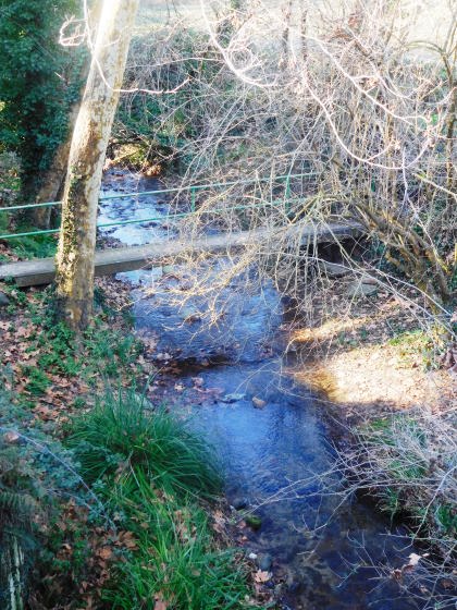 Seguiu la pista uns deu minuts, fins una corba, agafeu un sender més tapat per la vegetació, que baixa al sot de les Agudes , remunteu per el sender, a poc, teniu de fitxar-vos l’altre costar del torrent i a uns 15 metres per de munt, esta la Font d’en Pistola.