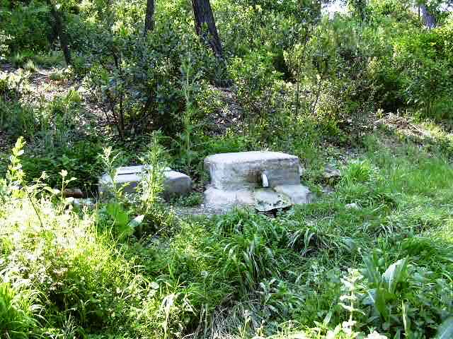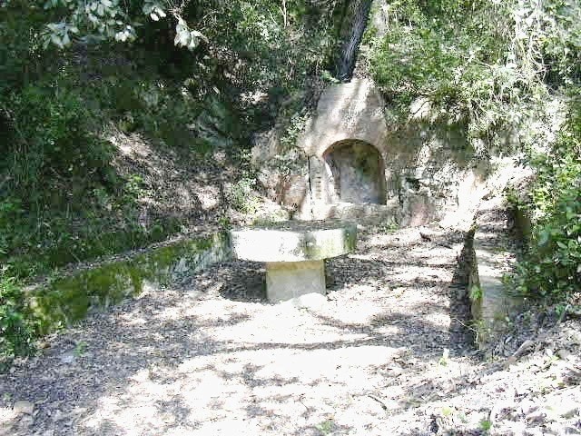 i a un nivell mes elevat, hi ha una antiga font amb una taula rodona de pedra, es un lloc tranquil, a pesar que també, no raja casi mai aigua pel tub.