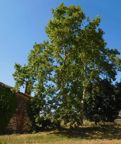 Aquest destacable plàtan, esta al costat de la masia de Canovelles.De fet, son dos plàtans que hi ha i de lluny sembla un conjunt d’un sol.Per arribar-hi podeu anar a la part antiga de la població de Canovelles i allí baixar fins la Font de can Duran, hi seguir fins arribar a la urbanització; a les hores us caldrà trencar per una pista de terra, que va paral·lela als primers xalets, us cal continuar, fins arribar a l’antiga masia de can Colomer.Els plàtans estan en un lateral de la casa a tocar per on passa l’antic camí de terra, ven segur la masia es molt mes antiga que els notables plàtans.Com que la masia des de fa uns anys esta tancada, no hi ha qui els cuidi, per això fa anys que no es tallant les branques, que han crescut cap a dalt formant una copa allargada.Aquests dos plàtans presentant un òptim estat de salut.