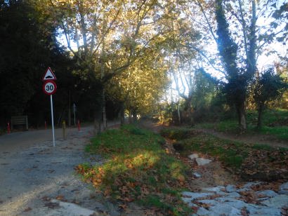 Cal iniciar l’itinerari, en el Passeig de la Riera, fins que no deixeu les cases es un camí asfaltat, amb tot un seguit de plataners de mes grans i vells a mes joves.