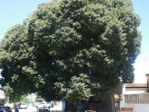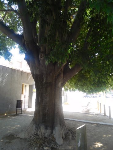 que dona molt de sol i poca ombra els arbres, que contrasta amb la frondositat de la riera de Carbonell en aquest lloc.