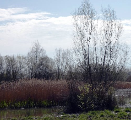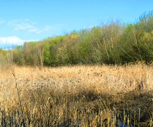 on es pot veure encara el canyissar com creix seguint els marges dels antics camps que ocupaven l’espai.