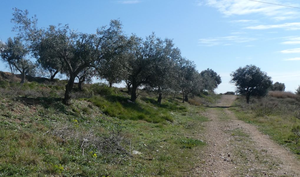 El camí fa una certa pujada, en mig de camps i de bosc.