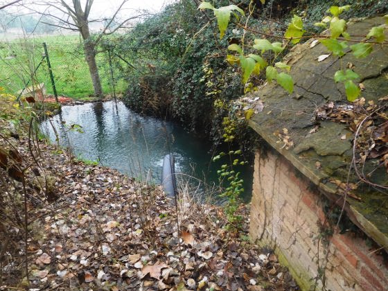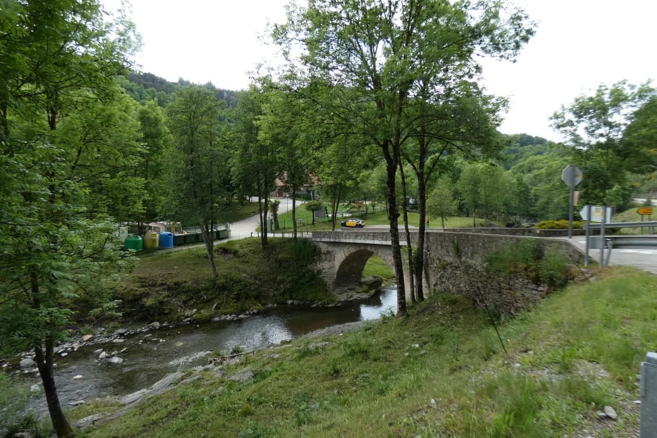 S’ha de creuar el riu i a la dreta ja s’aprecia la construcció de captació d’aigua.