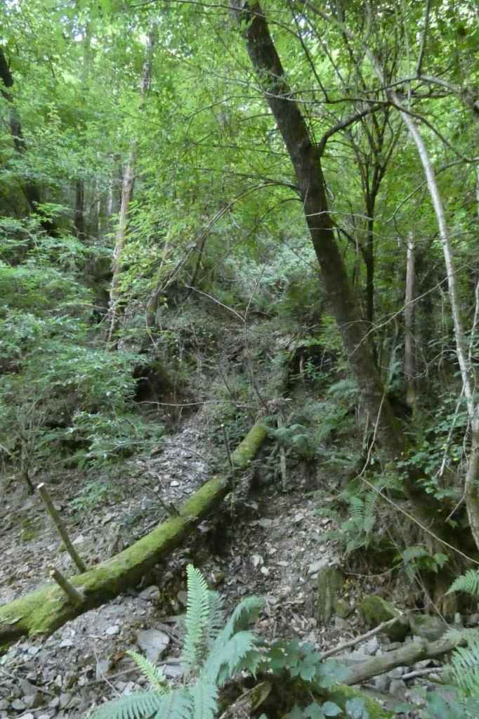 us caldrà seguir un camí duran uns 150 metres i desprès prendre la carretera que puja a Sant Martí Sacalm, seguiu uns 2,5 quilòmetres, just al començar a descriure una pronunciada corba a l’esquerra, allí mireu d’agafar un corriol que s’endinsa en el bosc i marxa en direcció oest.