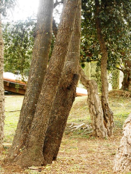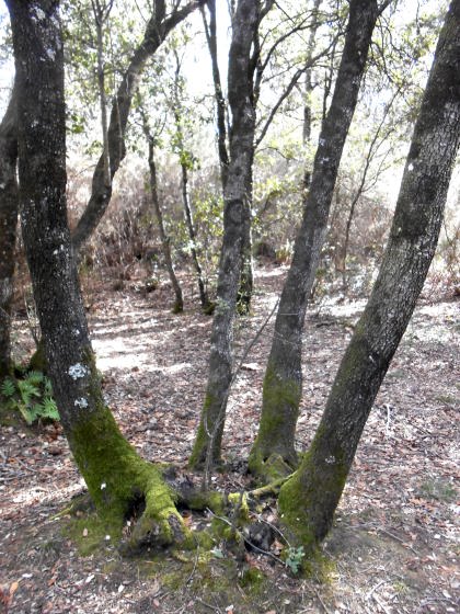tot i que muntanya amunt també s’hi poden trobar roures, castanyers i alguns faigs.