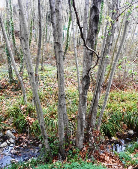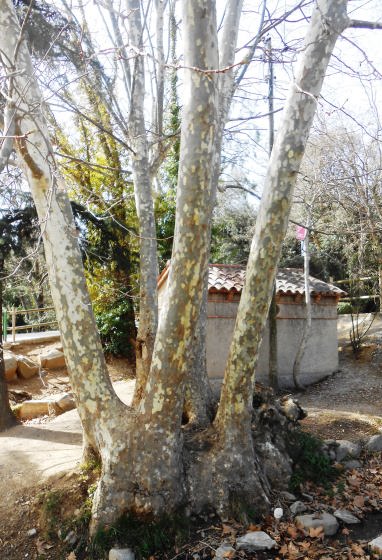com plataners, pollancres, alguna feixa i entre altres arbres,