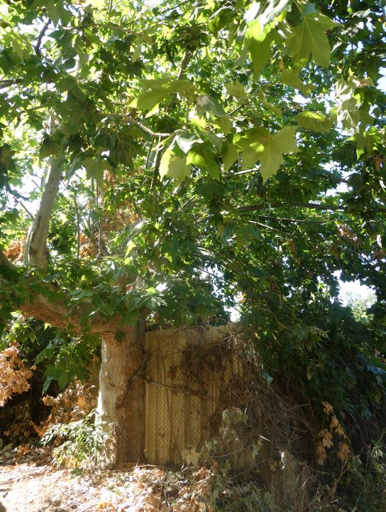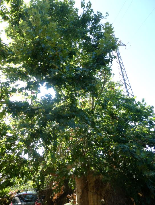 En aquest tros de carrer no asfaltat, en el costat esquer i front l’edifici del Molí, hi ha una filera de grans plàtans.