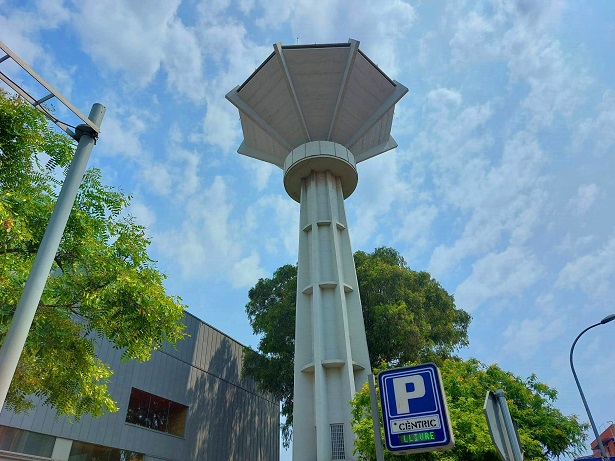 Podem dir que és una construcció destacada en altura, és d’una alçada de 38 m, feta de formigó armat vist.