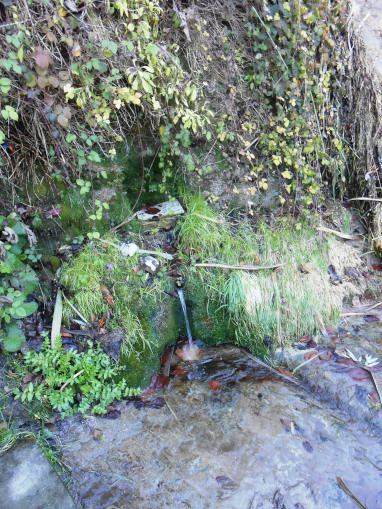 Al centre unes escales baixen al torrent de la Cira, on esta ubicada aquesta antiga i molt coneguda Font Calenta.
