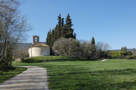 un cop passada l’església de Santa Maria de Porqueres, i al final d’una recta on la carretera passa a escassos 10 –15 metres de l’Estany de Banyoles,