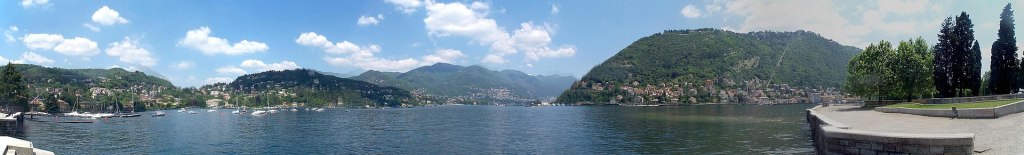 Especialment típica és la riba est del ramal de Como, molt accidentada i boscosa. El paisatge encara està format per cases antigues situades entre el llac i les muntanyes, amb escales escarpades que porten a la riba. La resta del llac, però, es caracteritza per un paisatge escarpat que obliga a una separació entre els habitatges construïts.