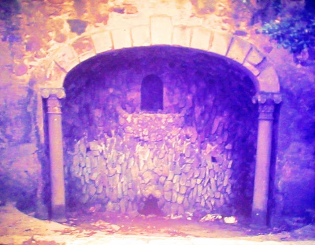 A l’entrada de la mateixa mina, a mà esquerra, queda la font, amb un tub de ferro galvanitzat que recull l’aigua