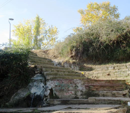 un segon cartell ens senyala que teniu que baixar uns esglaons que us portaran a baix, on passa un petit torrent,