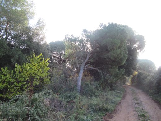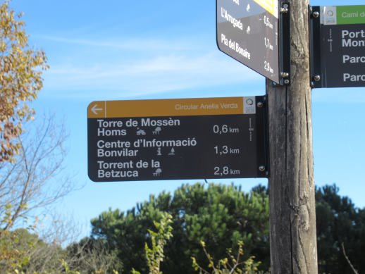 Un cartell us indica que teniu que resseguir part dels conreus en direcció a les vies de tren,