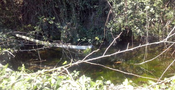 un segon cartell ens senyala que teniu que baixar uns esglaons que us portaran a baix, on passa un petit torrent,