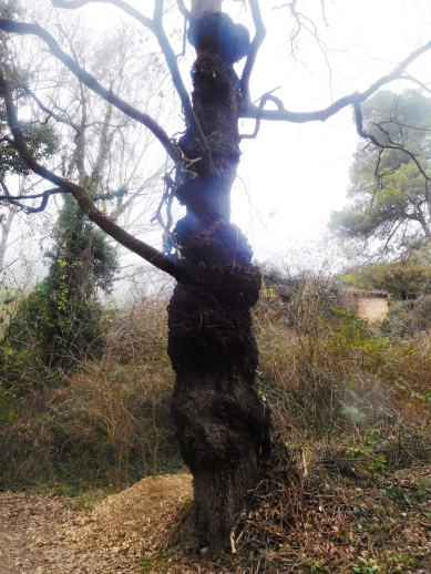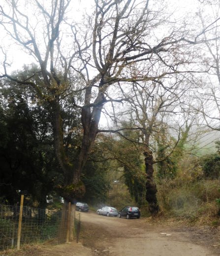 En l’entrada secundaria de la finca, trobem uns exemplars de roure i alzina,