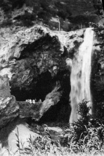 En un graó del cingle on hi havia un gorg que al bell mig de la timba deixa anar les aigües cap al fons de Vallderrós, la catabauma dels llacs i cascades :