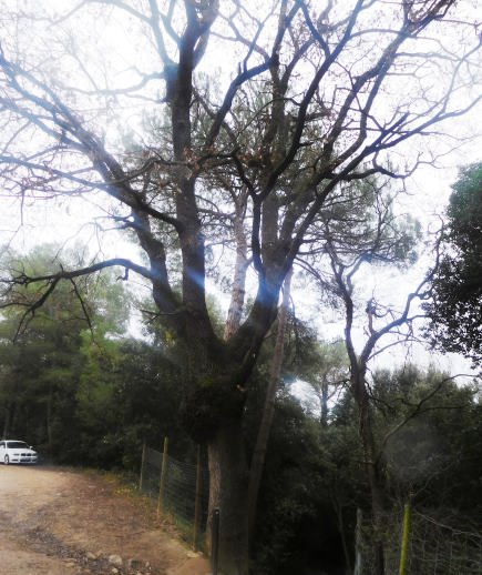En l’entrada secundaria de la finca, trobem uns exemplars de roure i alzina,