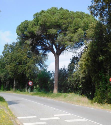 És gran i tot recta, majestuós sobre els de mes pins i alzines que hi ha a la vorera de la carretera en aquest lloc.