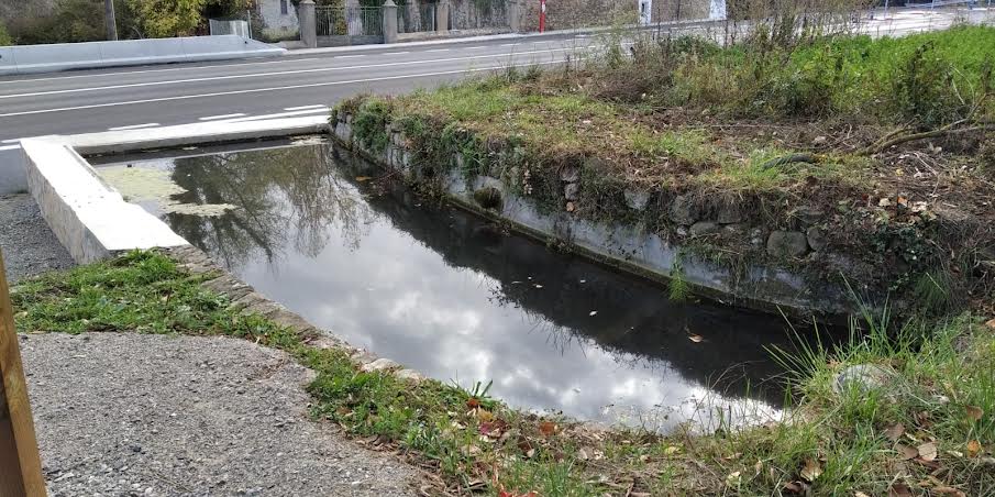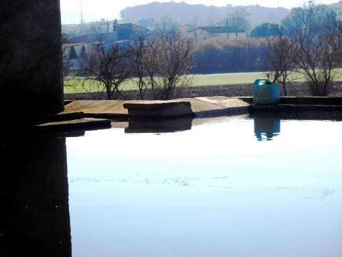 i l’aigua va a parar a una pica arran de terra amb forma rodona.