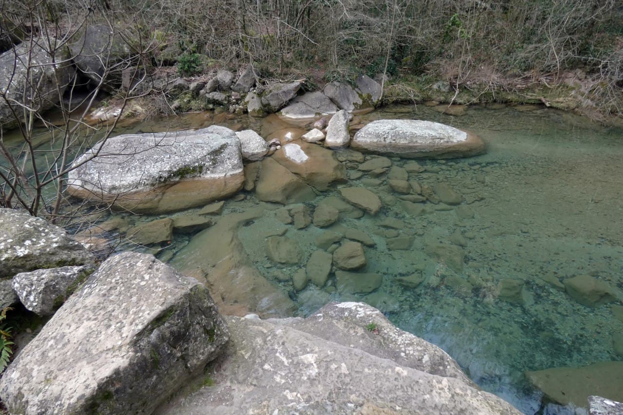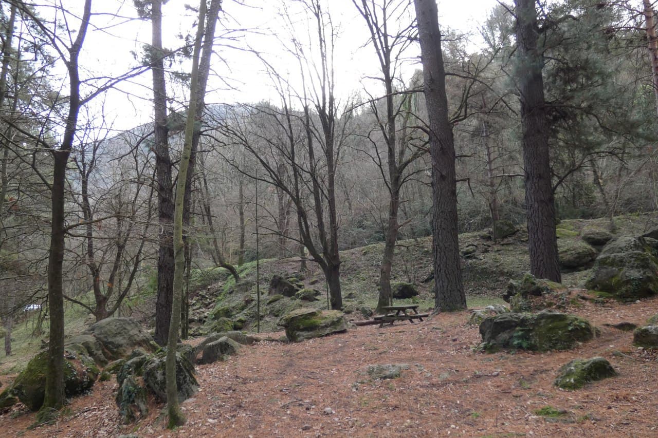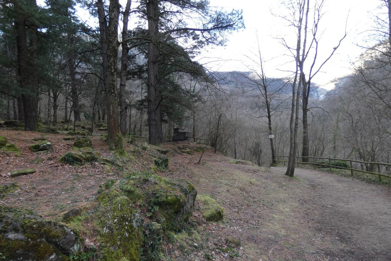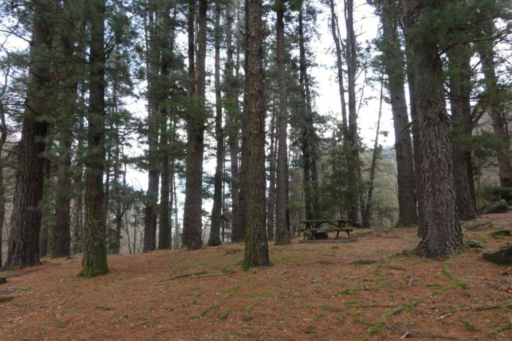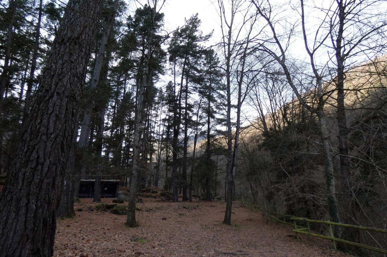 A poca distancia i a la dreta a peu de la carretera, hi ha un espai amb grans Pins,