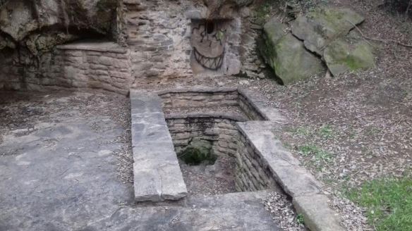 Cal visualitzar una barana de color verd, i a sota a nivell mes baix esta situada la font, en un dels seus costats hi ha uns esglaons que permeten baixar.