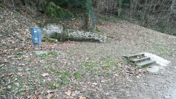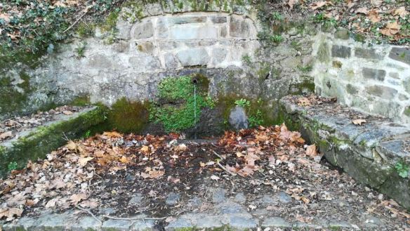 La paret feta d’obra de pedra vista, esta adossada com a mur de les terres del passeig, l’aigua surt poca o gens per un broc d’acer inoxidable i cau a una pica enreixada de ferro a nivell del terra, en cada costat hi ha un seient no massa gran, esta delimitat per un mur baix que també es pot fer servir per assentar-se, la riera passa a pocs metres mes a sota.