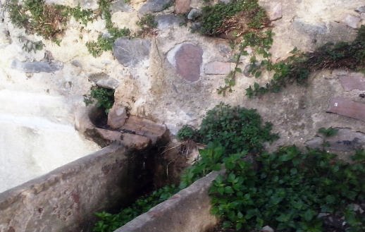 Disposa d’un broc de pedra que dona a una pica adossada a la bassa-safareig.