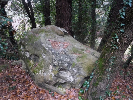 al poc i a un costat del camí hi ha una pedra de forma singular,