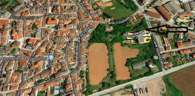 1 D’entrada ens situem al nucli de la població medieval de Santpedor (Sant Pere d’Or, degut al riu d’Or que travessa el terme). Sembla que les cases medievals i la portada romànica de l’església de Sant Pere va inspirar l’arquitecte en la obra d’autoria conjunta: “L’arquitectura romànica a Catalunya”.