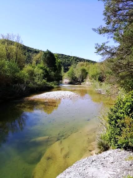Al curs baix hi trobem el bosc mediterrani, amb predomini de pi blanc, roures i alzines.