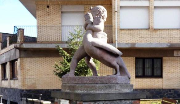 a damunt de la qual hi ha una capelleta, amb teulat i reixes, que conté la figura de Sant Jaume.
