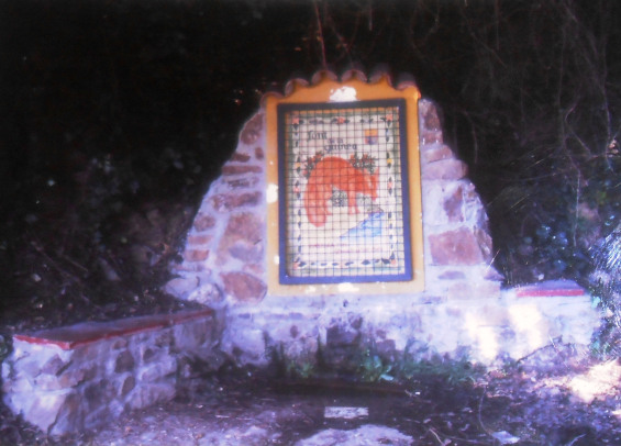 Construcció tota de pedra, amb una aixeta de polsador, per on surt l’aigua que cau a una pica d’obra arrebossada.