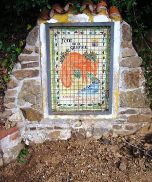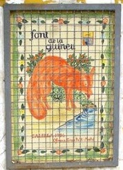 Al capdamunt i en un costat dret de la font, hi ha una pedra gravada en relleu amb el nom de la font, l’escut de Mura i les dates 1930-1973.