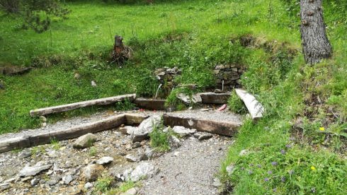 Hi ha tres tubs, on l’aigua que es molt abundant, cau a un sorral de pedres petites, aguantades per unes grans fustes.