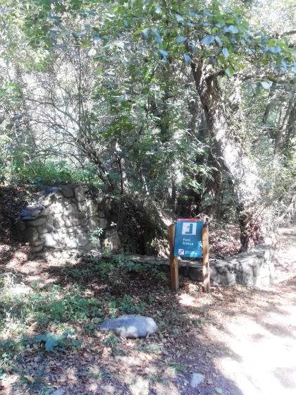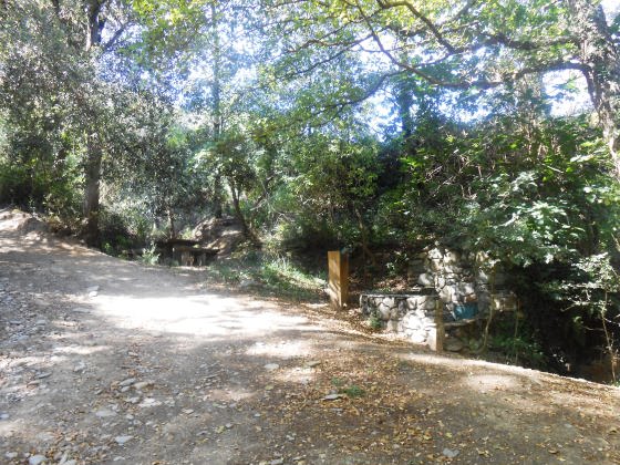 Hi ha un trencall a la nostra dreta tot pujant la riera, que ens portaria directament a Aiguafreda de Dalt i les seves fonts.
