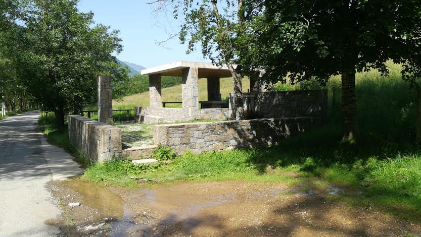 tota es d’obra i surt l’aigua per tres brocs, el del mig sempre en surt amb molta força, que cau a una pica arran del terra.
