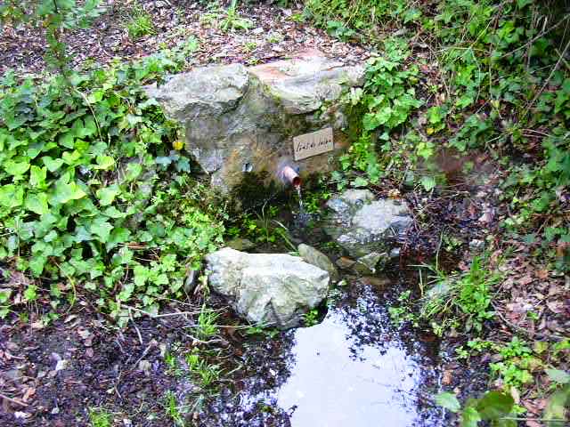 A l’altra banda de l’entrada entre el límit entre els conreus i el bosc, trobareu, la primera font., la Font del Botó , es difícil de trobar, donat que en moltes ocasions està tapada per les bardisses, ens fitxarem en anar per un camí marcat amb senyals amb ratlla groga, al poc a l’esquerra en una petita explanada esta aquesta font.