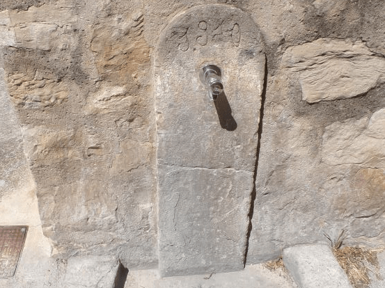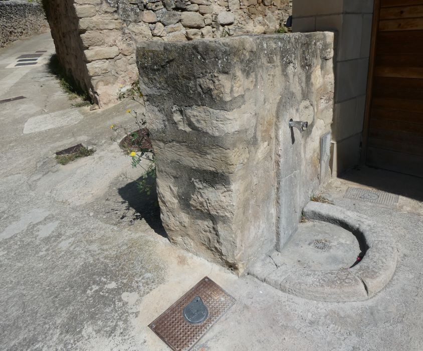Font molt senzilla, es una petita columna adossada a la paret de l’església, sota del Campanar.