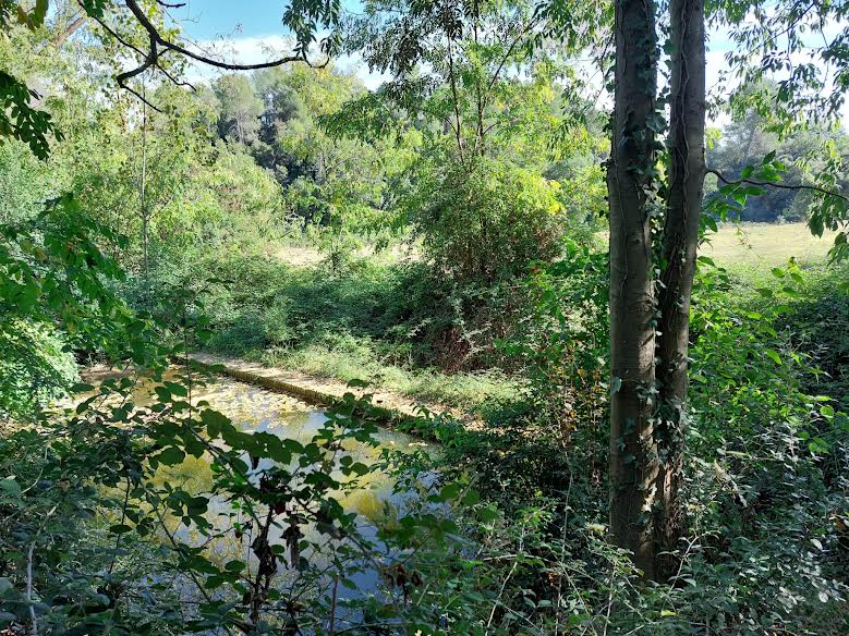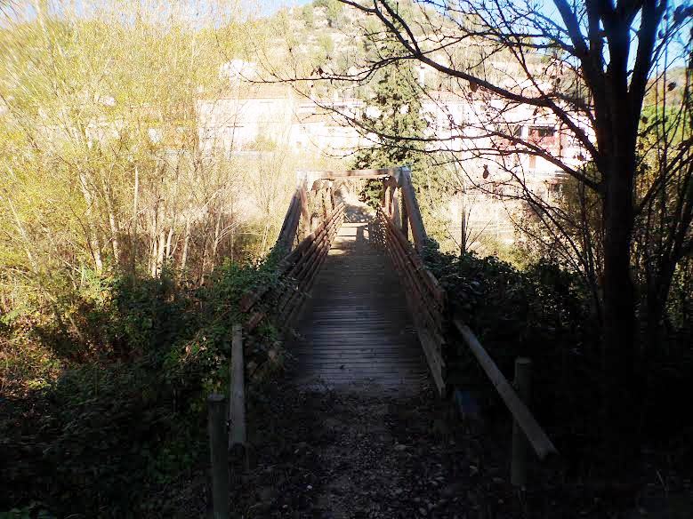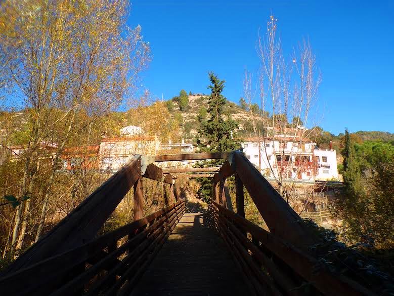 prop del pont medieval de Periques i envoltada de paisatge de ribera.