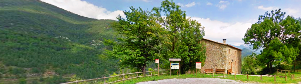 A l’esquerra hi ha una zona d’esbarjo i una cinquantena de metres més amunt queda l’Ecomuseu i l’ermita de Sant Joan de l’Avellanet.