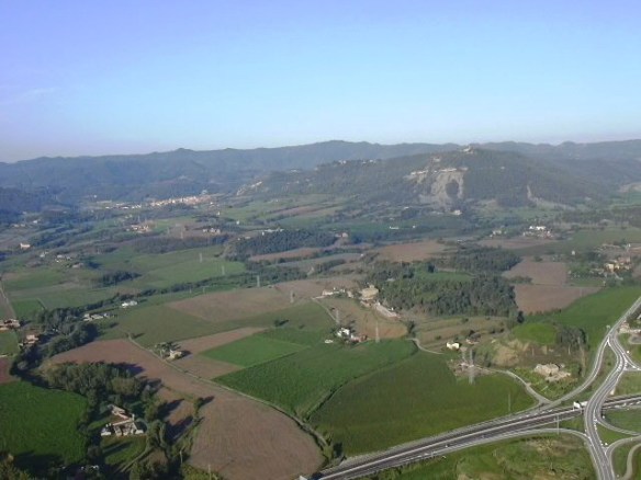 Guiats pel vent, és veuen pobles, camps de cultiu,