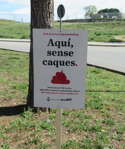 Desprès de moltes queixes, l’ajuntament ha decidit posar en la majoria de faroles del centre del poble i a dos costats, cartells avisant que hi ha que recollir-les, en cas de no ser així tindran una multa de 100 euros.