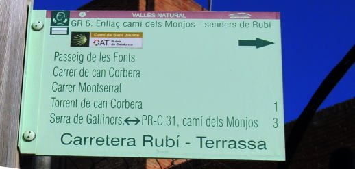Els cartells també indiquen els trams de l’itinerari que corresponen a la xarxa de camins vells de Terrassa que enllacen amb Sabadell, Vacarisses i Ullastrell.