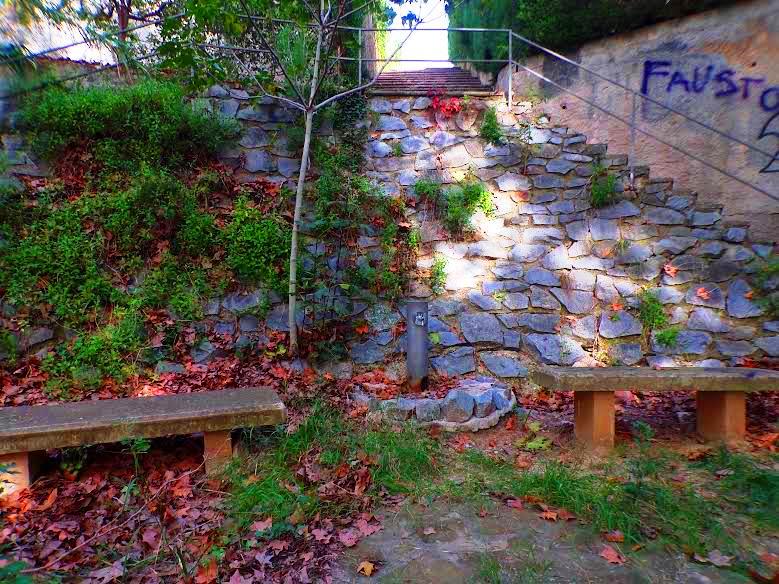 Actualment hi ha una Font d’aigua de xarxa pública amb aixeta polsador, al centre de dels dos grups d’escales que baixant al parc.