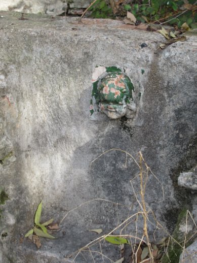 hi ha un petit cap de nen de ceràmica on podia haver sortit aigua i cauria a una pica, seria com un desguàs?…