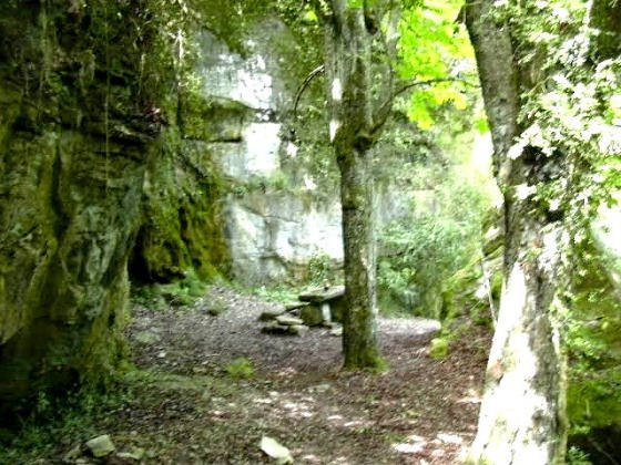 En un costat hi ha una taula i pedres formant com unes cadires improvisades.