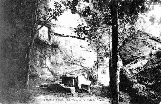 Sols uns metres mes i… allí es troba sota una paret abrupta La Font, la constitueixen un conjunt de regalims d’aigua que s’escolen per les roques i han excavat amb els anys unes piques arrodonides on sempre hi ha aigua.